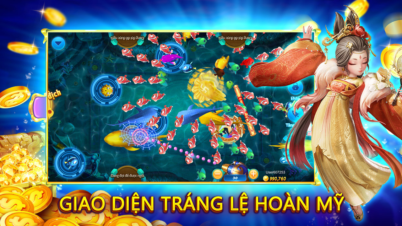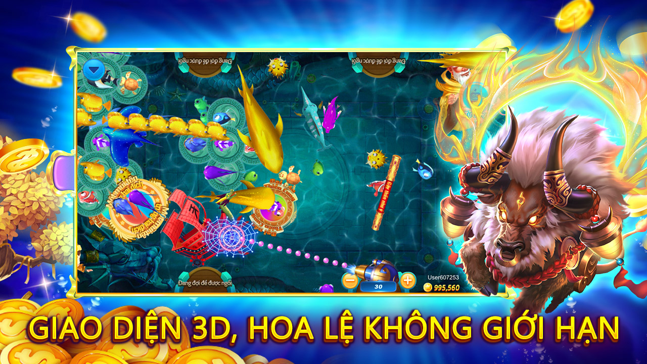3A Trải nghiệm chất lượng hình ảnh giống phim điện ảnh 3A Nâng cấp hoàn toàn chất lượng hình ảnh,định nghĩa lại lần nữa chất lượng trò chơi bắn cá,thưởng thức chất lượng hình ảnh với độ phân giải cao như cảm giác trong phim Lối chơi mới- Ngư trường đặc sắc Cách chơi siêu mới thú vị gây nghiện, nâng cấp cổ vật, mở đầu một loạt các trò chơi bắt quái vật và trải nghiệm thêm nhiều niềm vui đột phá, lãnh hội ngư trường biển sâu đặc sắc Nâng cấp thần thú Tập kích thần bí Những cuộc công kích bất ngờ của các loài cá thần bí những vị thần thú cổ đại, tồn tại nhiều cơ hội cùng với mạo hiểm. Truy đuổi theo những con rồng cổ đại, cướp kho báu dưới biển sâu, pháo đạn ngàn lần, trở thành tỷ phú trong vài giây. Phúc lợi vô vàn Quà to gửi tặng Đăng nhập tặng ngay vô vàn phúc lợi, nâng cấp tặng VIP, người dùng mới tặng thưởng,hàng trăm triệu lợi ích thật tuyệt vời, để bạn xưng bá ngư trường và đạt đến đỉnh cao.